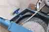 The brake is a simple foot-operated friction pad, that is spring loaded.