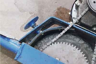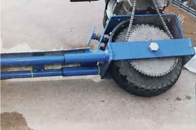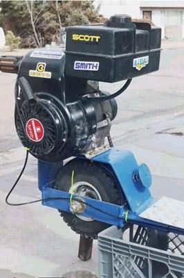 It originally had a 3hp motor on it, but that required a larger (72tooth) sprocket on the rear wheel, which hit the ground when turning.