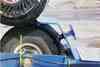 The brake is a simple foot-operated friction pad, that is spring loaded.