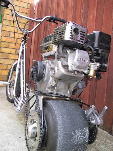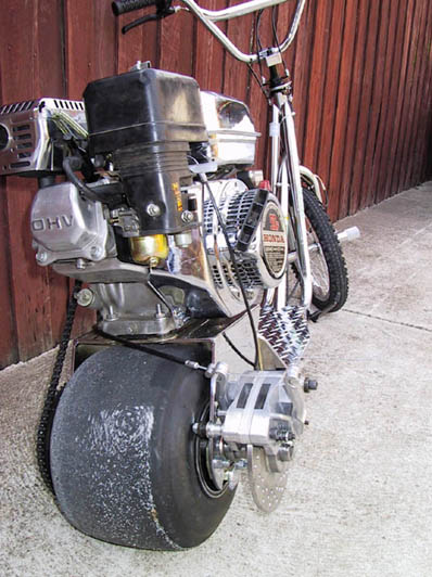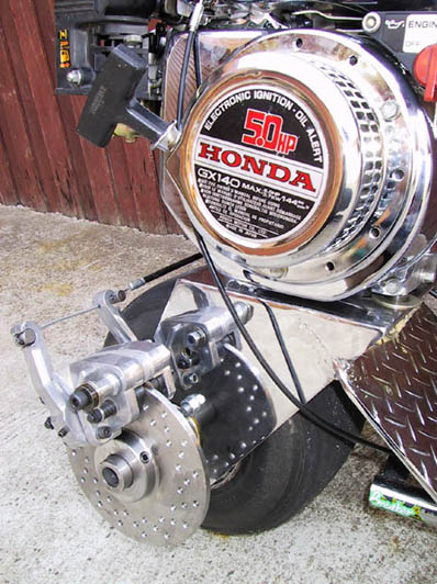 A totally custom rear end, built onto a commercial scooter frame. Checkerplate deck and its all chromed.